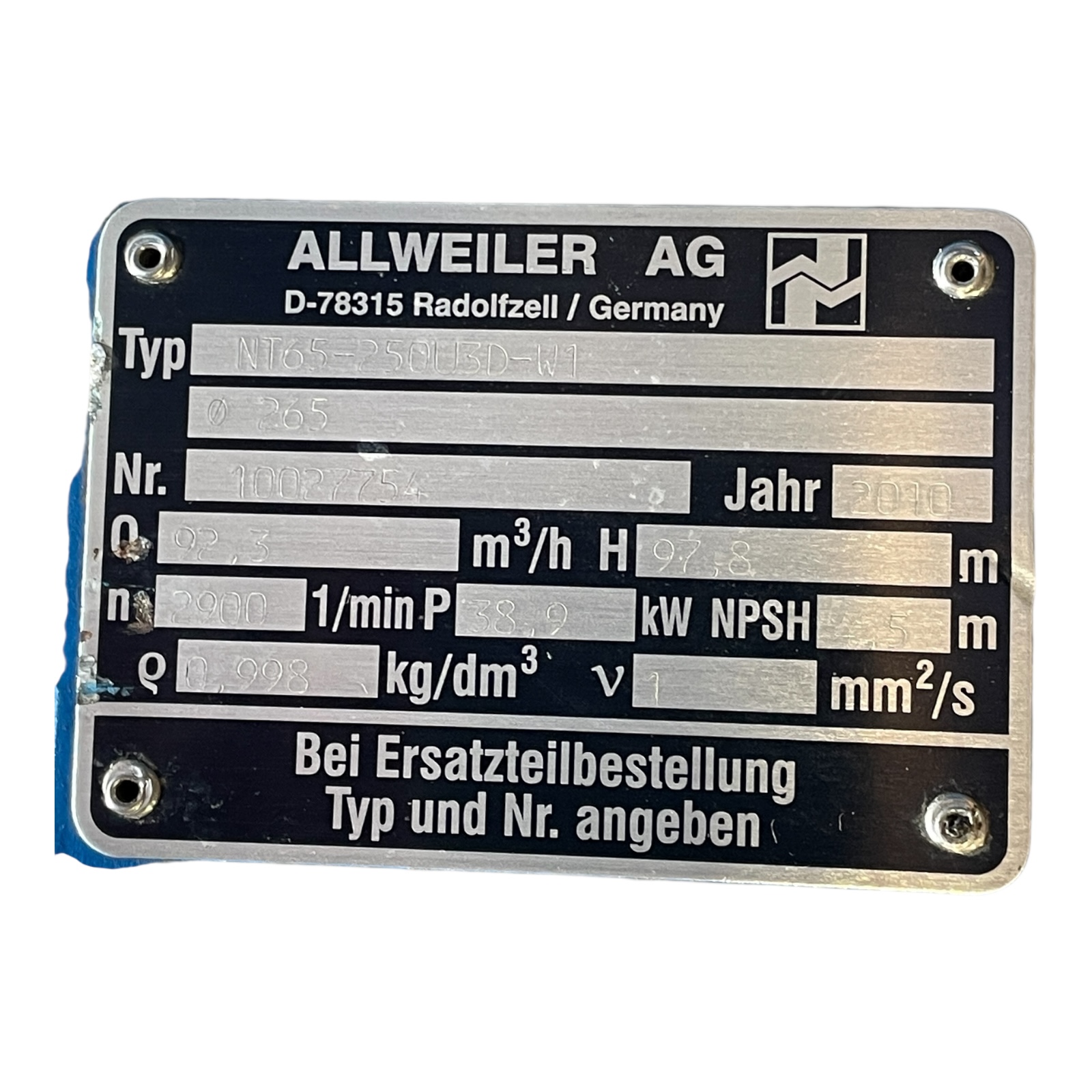 ALLWEILER NT65-250U3D-W1 Zentrifugal Elektropumpe -unused-