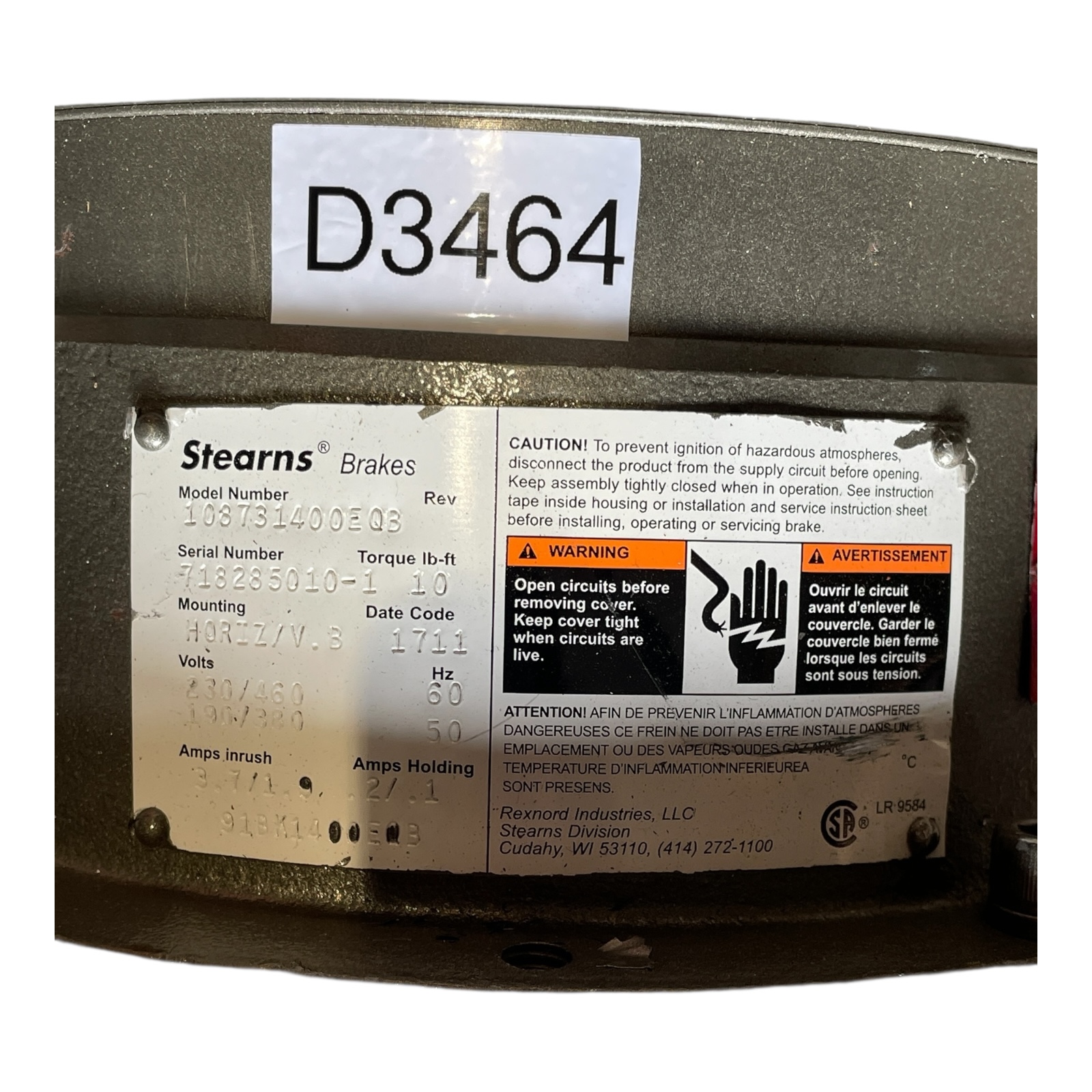 Baldor Reliance B59102497 Getriebemotor mit Stearns Brakes 108731400EQ3 -unused-