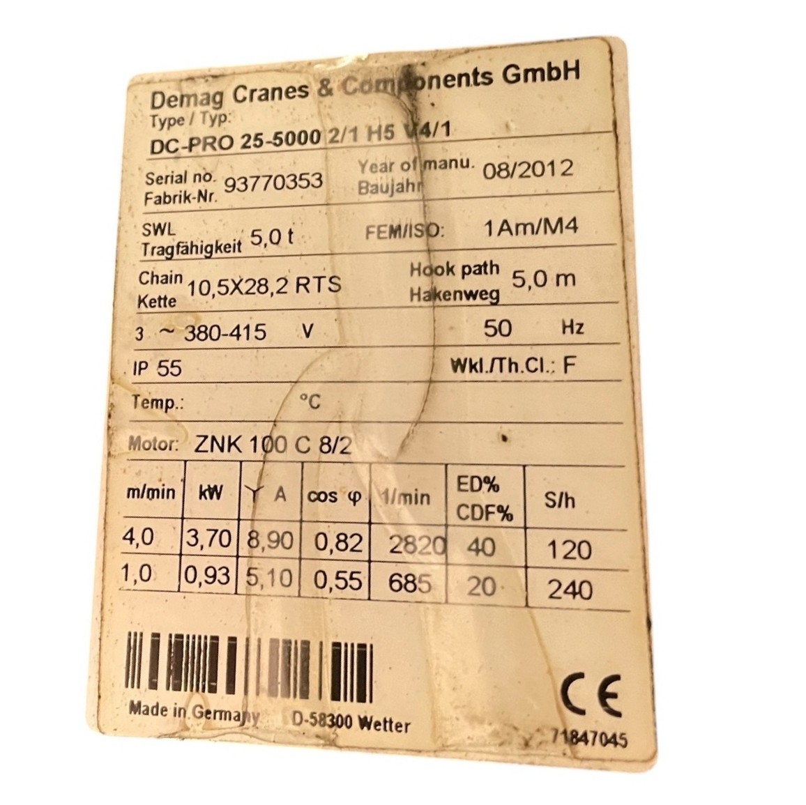 DEMAG DC-PRO 25-5000 2/1 H5 V4/1 Kettenzug -used-