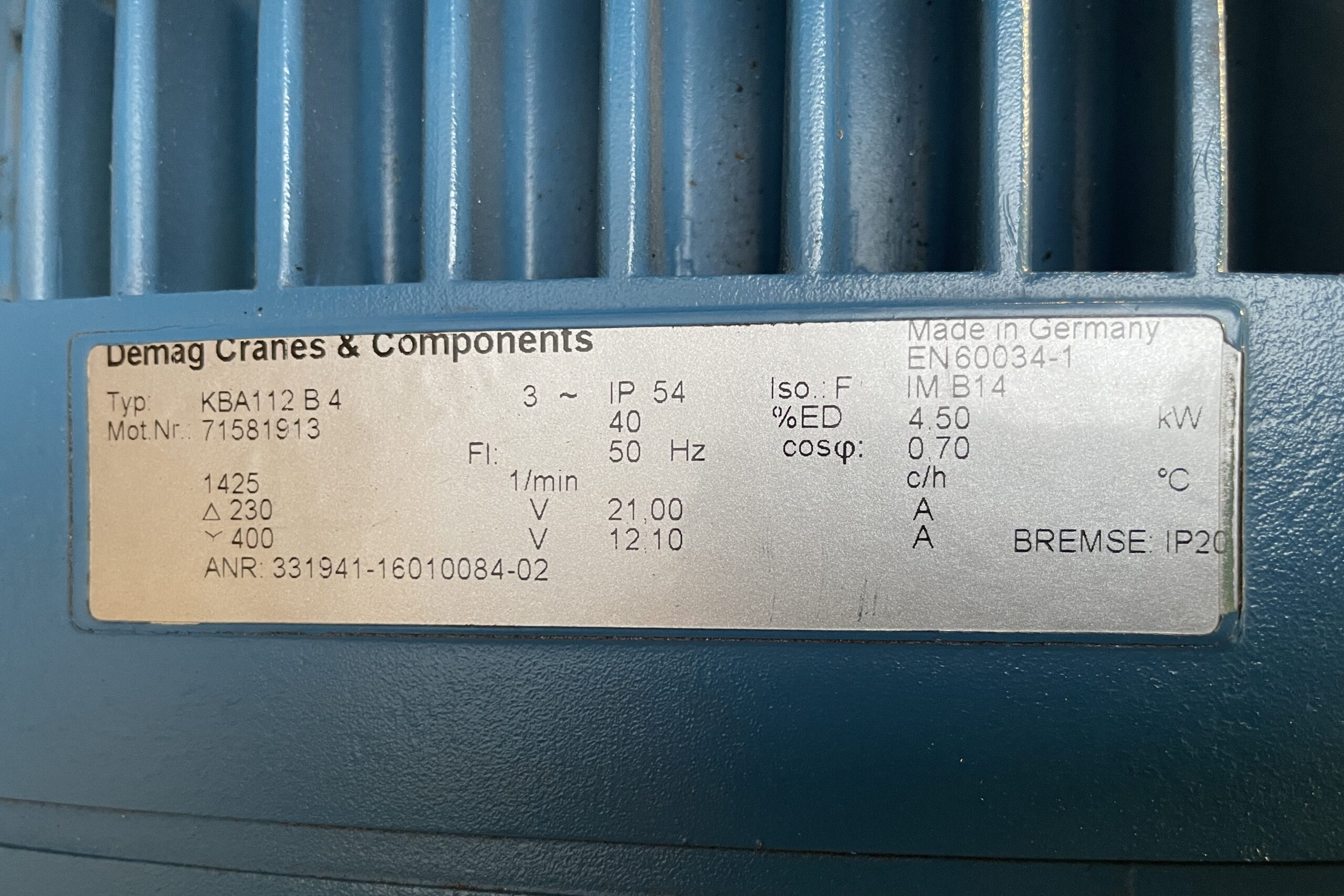 DEMAG KBA112 B4/4,50kW Bremsmotor -unused-