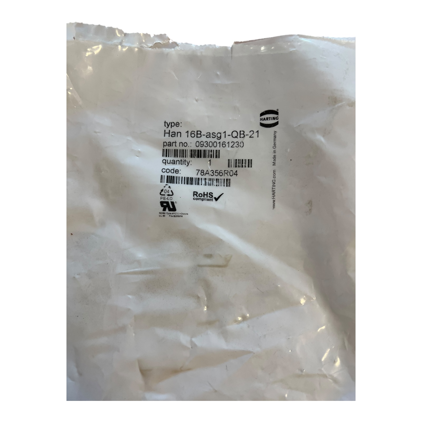 Harting Han 16B-asg1-QB-21 9300161230 socket housing -OVP/unused-