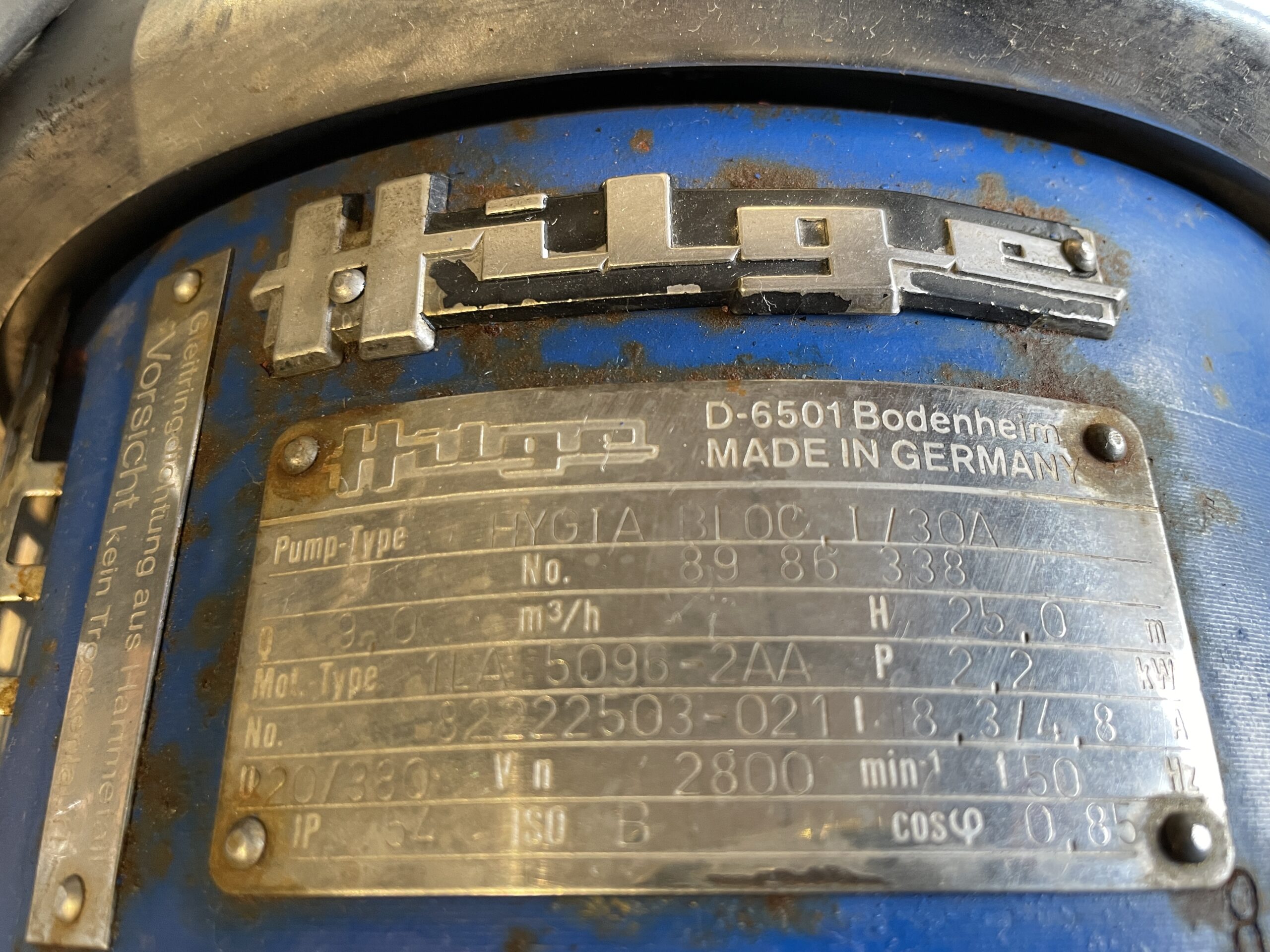 Hilge HYGIA BLOC I/30A Kreiselpumpe + SIEMENS 1LA5096-2AA21-ZX05 Motor -used-