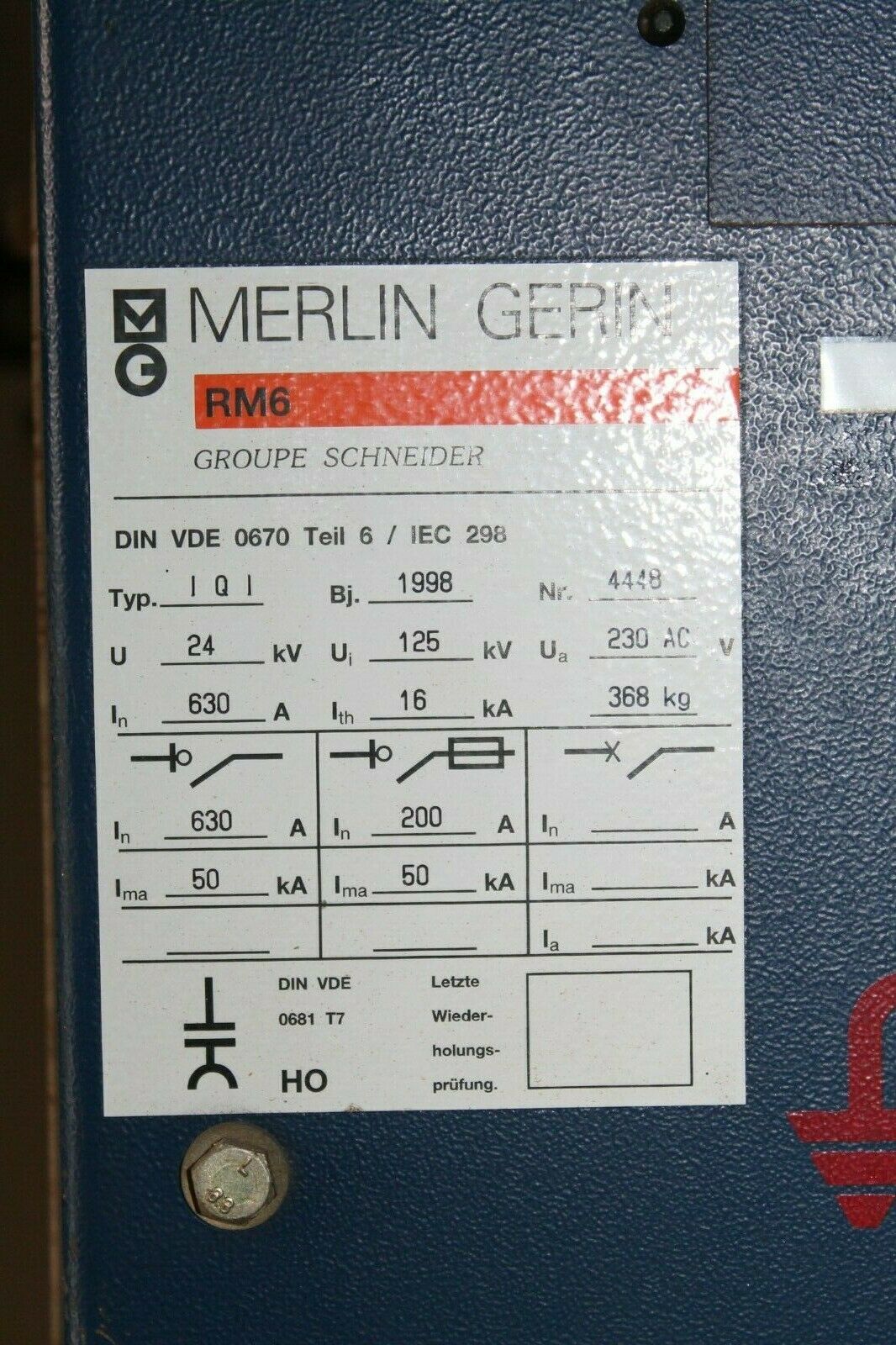 U: 24kV, Ui: 125kV, Ua: 230AC