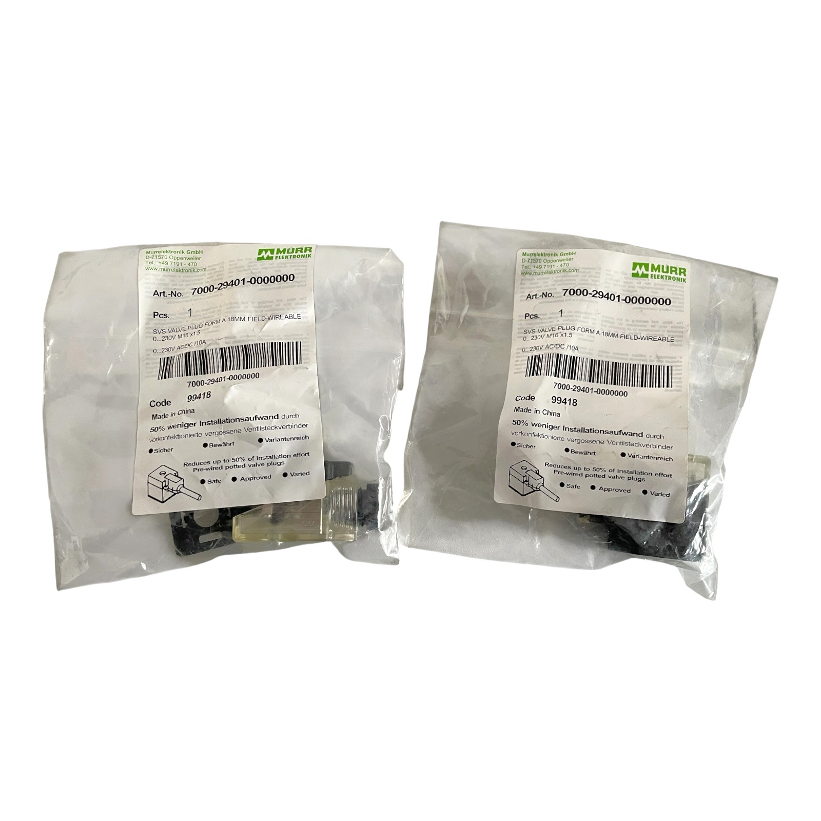 MURR ELEKTRONIK 7000-29401 Ventilstecker 2 Stück -unused/OVP-