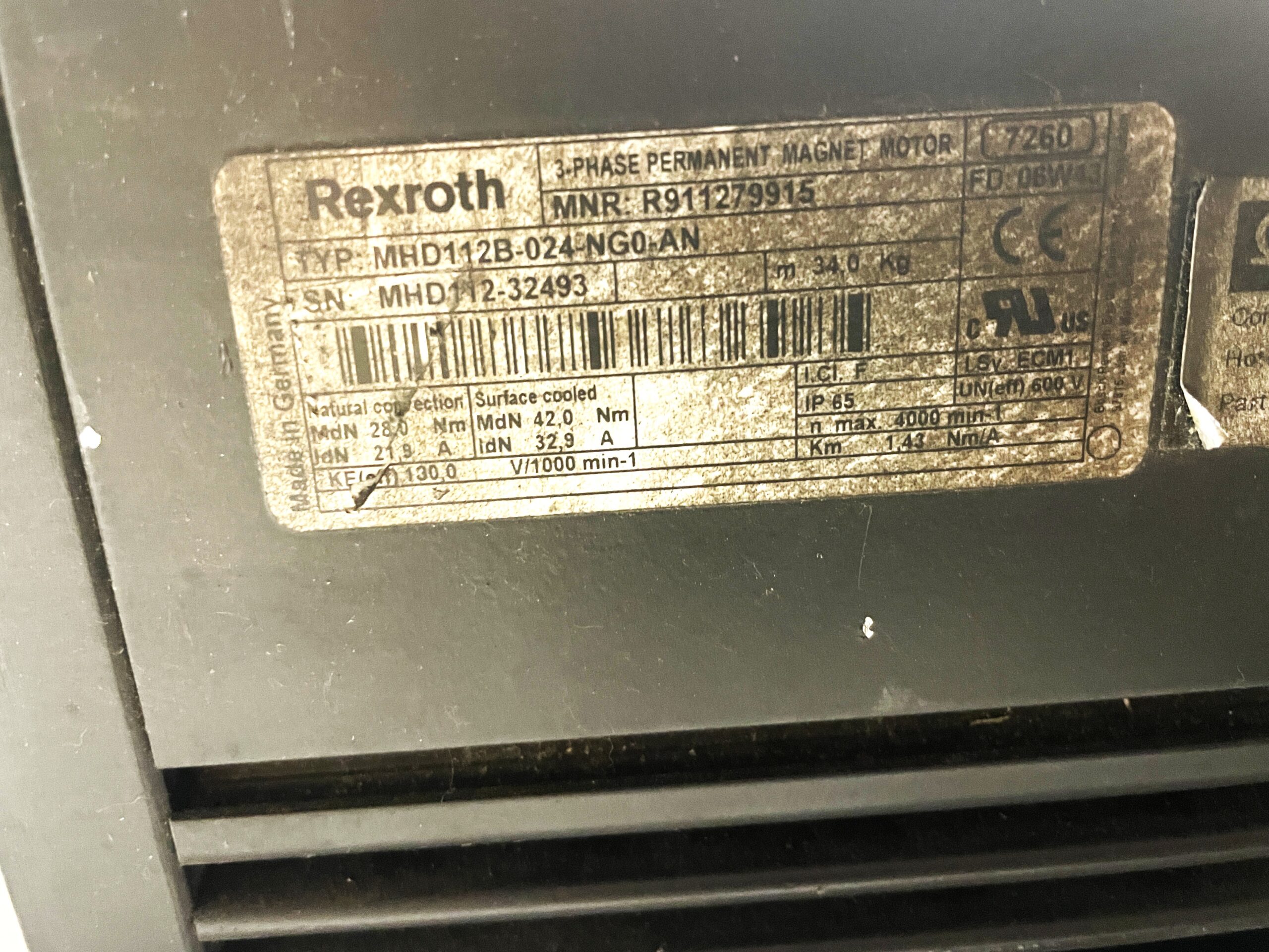 Rexroth MHD112B-024-NG0-AN Servomotor + LEM-AB112x121 -used-