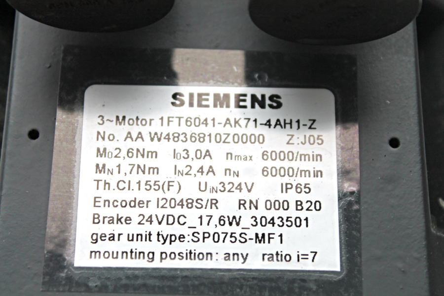 SIEMENS 1FT6041-AK71-4AH1-Z – 6000 rpm + Getriebe Alpha SP-075-mf1-7 -unused-