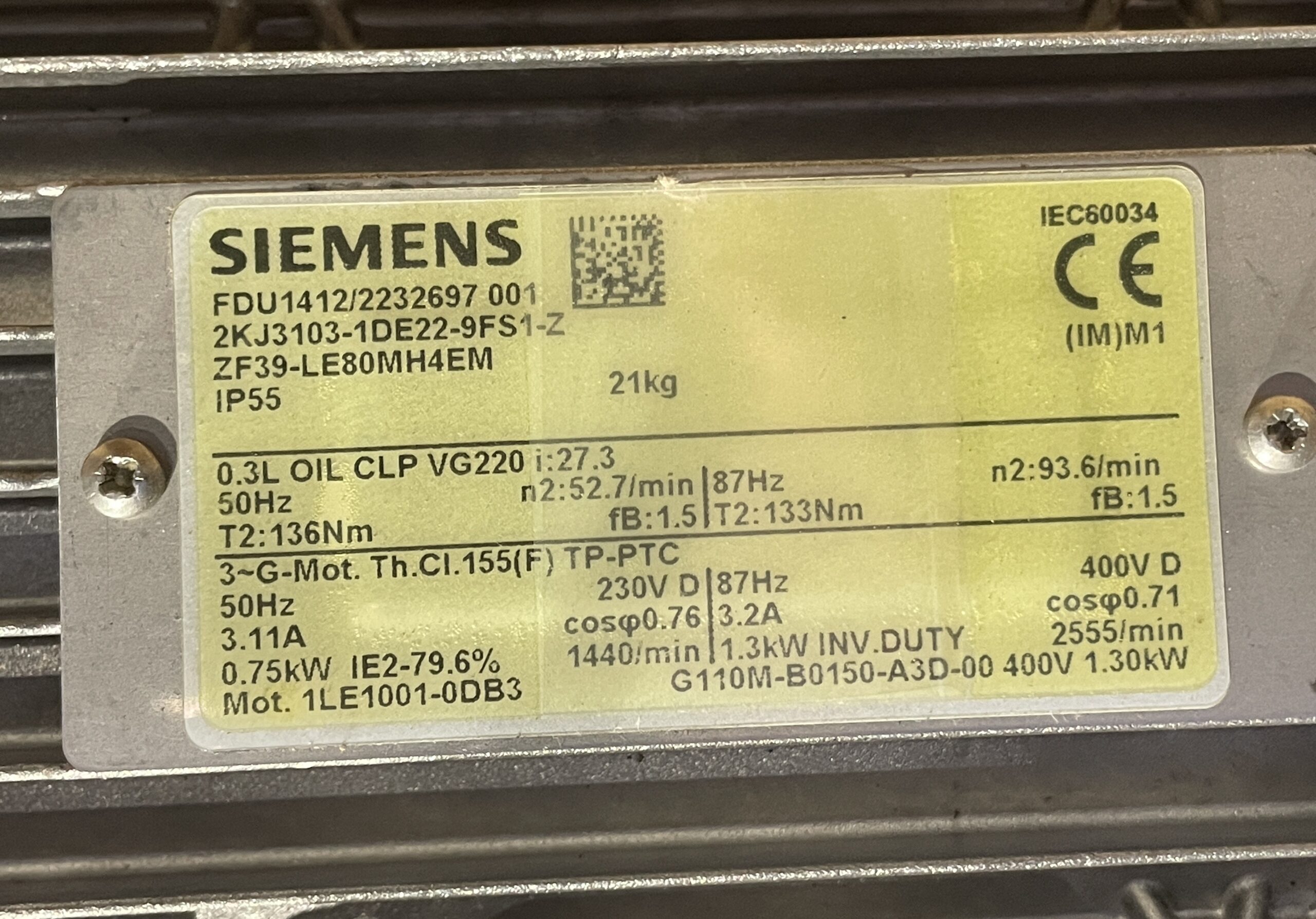 Überlast: 1,5kW bei 200% 3S, 150% 57S,