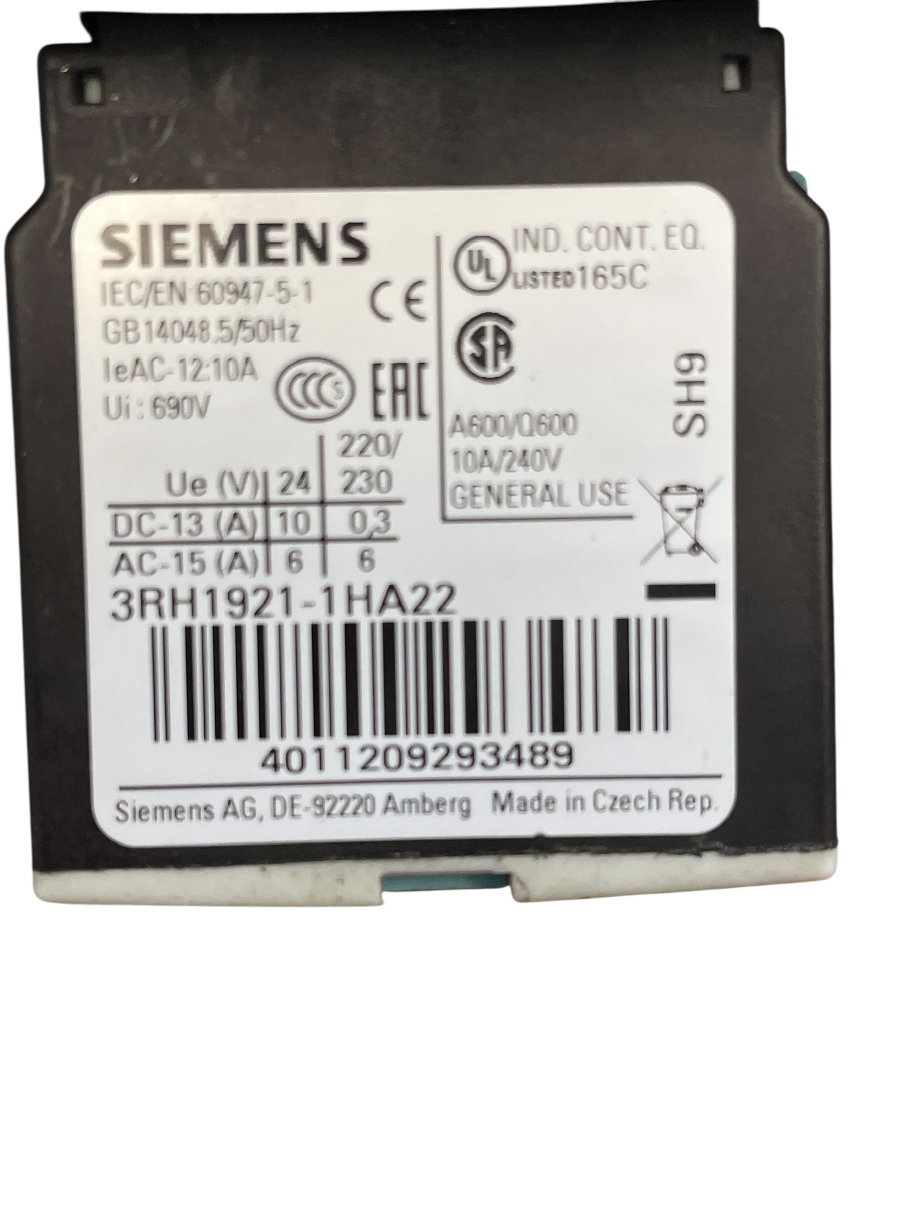 60 Hz 2 NO + 2 NC, 3-pole