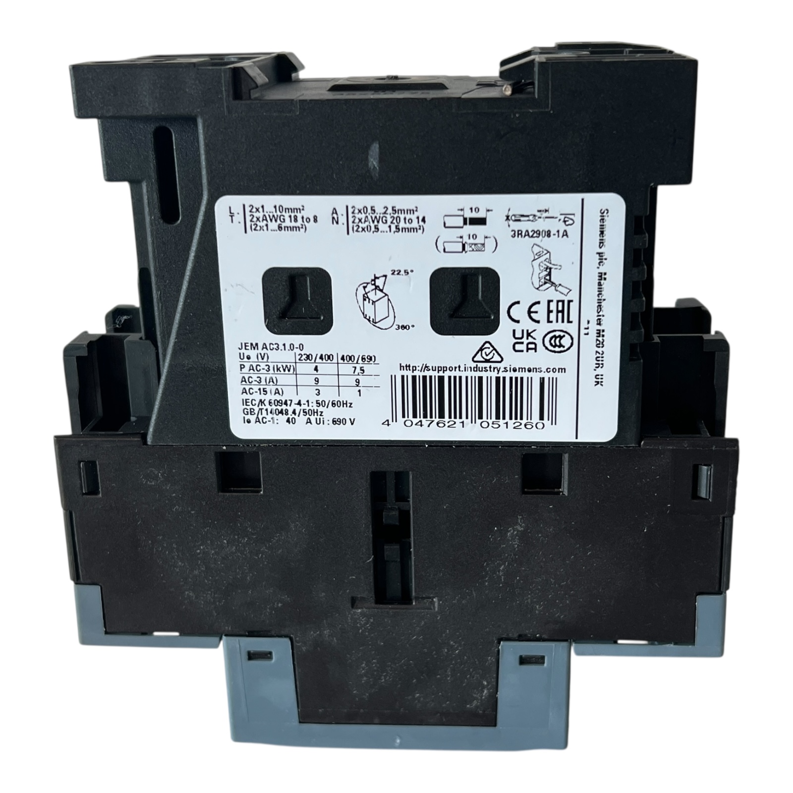 power contactor, AC-3e/AC-3, 9 A, 4 kW / 400 V,