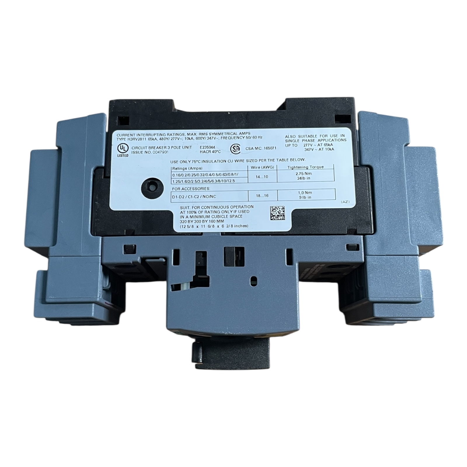 Circuit breaker size S00 for transformer protection