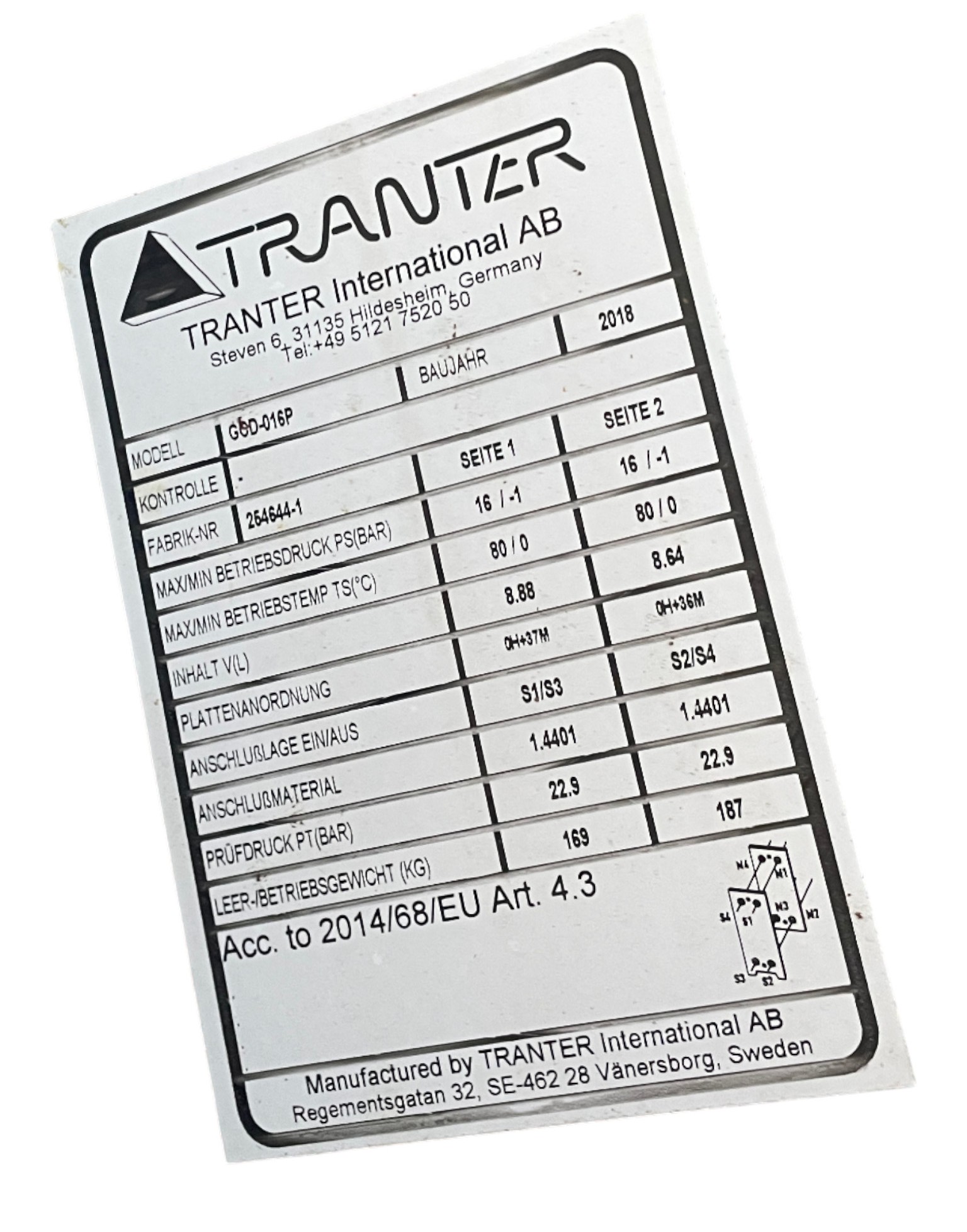 Tranter GCD-016P – 74 Platten Plattenwäremtauscher -unused-