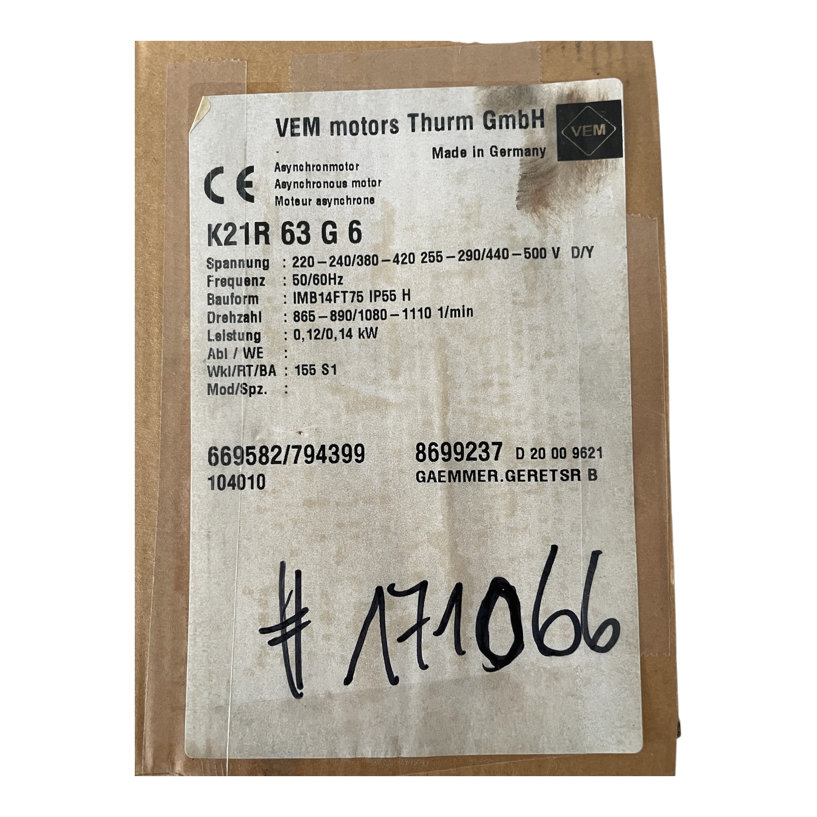 50 Hz, 0,12kW, 230/400V, 1,03/0,59A, 865 890 min-1